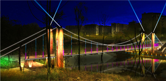 在化育橋沿河橋梁亮化上,本設(shè)計(jì)以最現(xiàn)代的風(fēng)格就橋主體輪廓和面進(jìn)行亮化,把沿河兩岸連接在一起,在河水映襯反射下,交相輝映、流光溢彩,形成一道道具猶如彩虹般的風(fēng)景線。本次工程所有燈具全部是選用耗電少、低維護(hù)、壽命長(zhǎng)的高品質(zhì)LED光源。運(yùn)用先進(jìn)技術(shù)進(jìn)行制作安裝,最大限度的降低電費(fèi)、維護(hù)等成本。