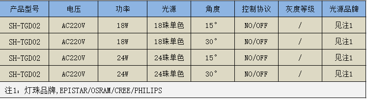 光源品牌: 晶元、歐司朗、科銳、飛利浦
