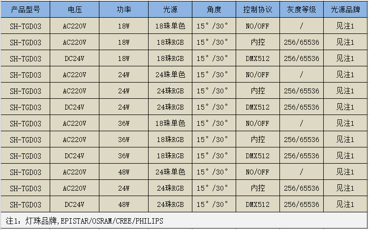 光源品牌: 晶元、歐司朗、科銳、飛利浦
