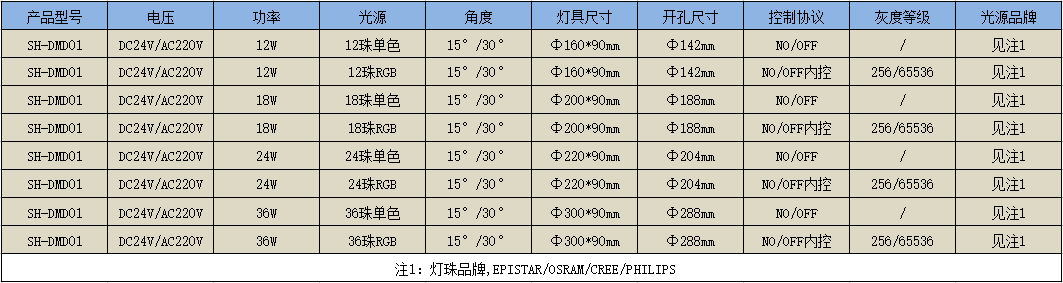 功 率: 12W、18W、24W、36W